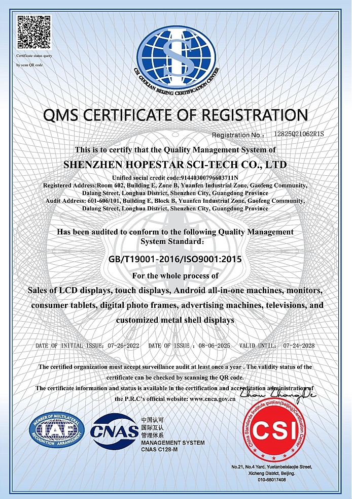 در حال حاضر، ماISO9001، CE، Rohs، FCC، KC، CB، SAA، RCM، Energy Starو گواهینامه های دیگر برای برآورده کردن الزامات کیفیت و ایمنی کاربران در کشورهای مختلف.