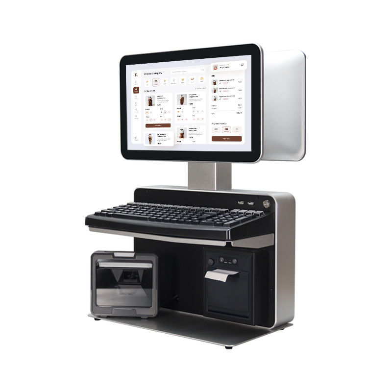 سیستم POS با صفحه نمایش دوگانه 14 اینچی,POS خرده فروشی سوپرمارکت با بارکدخوان,POS صندوق فروشگاهی با قابلیت اتصال به چاپگر